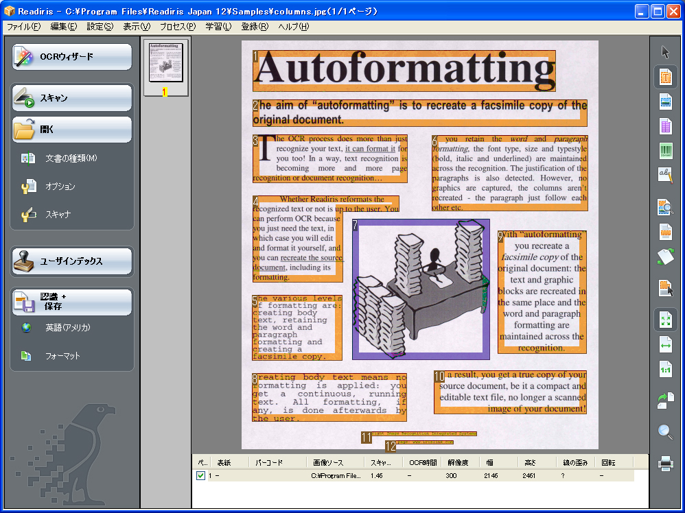 8) 強力な索引付けツール(Readiris JAPAN 12)