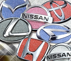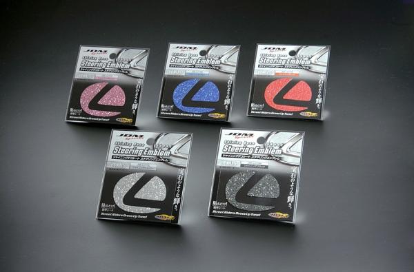 ステアリング上にあるエンブレム専用のキラキラ光るエンブレムシート、メーカー別、カラーも豊富に5色からお選びいただけます。