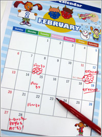 児童英検オンライン版商品を購入いただいた方全員に「ジュニアルファといっしょにえいごをたのしもうカレンダー(写真)」(2011年1月~3月分)をもれなく無料ダウンロードプレゼントいたします。