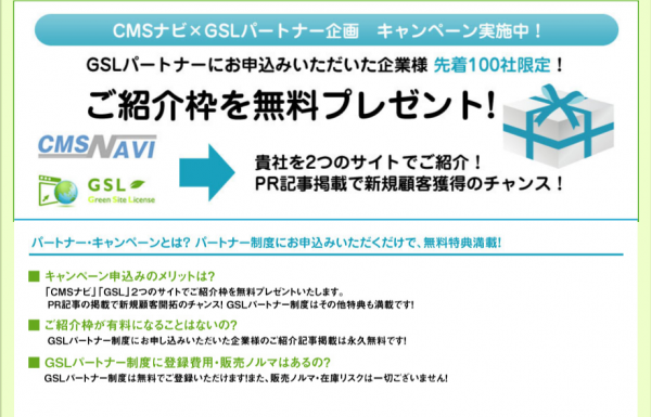 「CMSナビ×GSLパートナー」キャンペーン・ページ