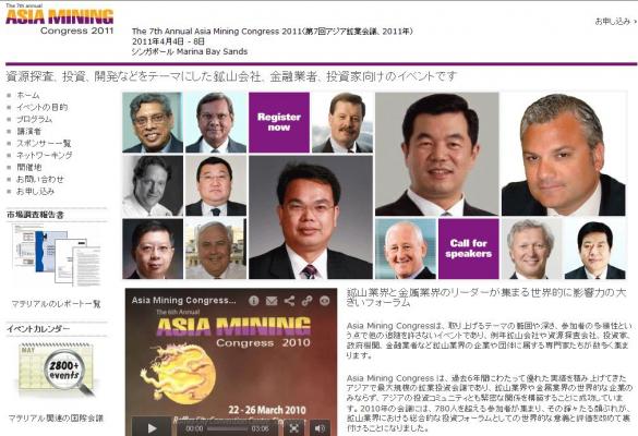 「The 7th Annual Asia Mining Congress 2011 (第7回アジア鉱業会議、2011年)」の情報を提供するとともに、会議の参加のお申し込みを承っております。
