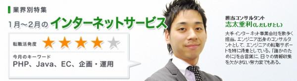 求人件数は落ち着いていますが、採用意欲という観点では好調が続いています。12月に求職者が就業を決定した企業の約47%がインターネット業界であり、関係の深いモバイル業界とあわせると実に約64%に上りました。職種別ではエンジニア系職種が全体の約50%、クリエイティブ系職種が約33%を占めています。エンジニア系職種では、従来通りPHPやLAMPの経験を求める求人に加えて、PHP・Java・Perlといった複数の言語での開発経験を問うものが見受けられました。技術者採用の競争が激化していることに伴い、応募条件を広げる動きが顕著になっています。クリエイティブ職種の募集で多いのは自社サービスやコンテンツを企画・運営している企業であり、「企画・ディレクション経験」「運用(アクセス解析など)経験」「改善提案経験」を求めるものが多くありました。