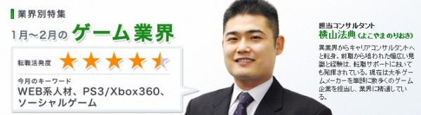 一方、コンシューマー業界がオンラインやソーシャルに参入したことでWEB系人材の需要が高まり、WEB系エンジニアやWEBディレクター、デザイナーなどの求人が大手パブリッシャーや中堅パブリッシャーから相次ぎました。コンシューマー業界では依然としてPS3やXbox360といった次世代機経験者のニーズが高い傾向にあります。転職マーケットにおいてPS3やXbox360の経験を有する人材は希少であるだけに、該当する転職希望者は引く手数多の状況です。