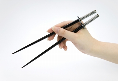 日本刀をモチーフにした特徴的なシルエットのお箸ですが、市販のお箸と同じ感覚でご使用できます。長さは標準サイズの23cmです。