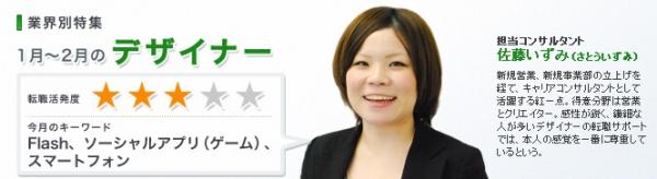 今月特に目立ったのは、スマートフォンの市場展開を背景とする「Flashクリエイター」の需要拡大でした。WEB・IT業界のデザイナーはスペシャリスト化が進み、サイトのデザイン・コーディングを手がける「WEBデザイナー」、アバターやアイテムのデザイン・制作を行う「イラストレーター・グラフィックデザイナー」、Flashデザイン、オーサリングを得意とする「Flashクリエイター」の3職種に分類される傾向が強まっています。