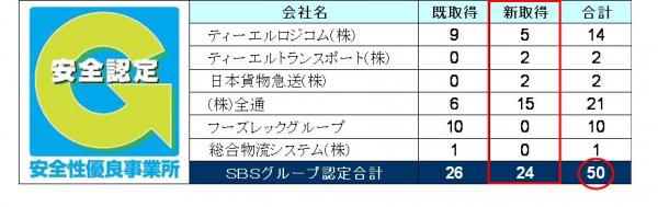 その一環として、より安全性の高い事業運営を図るため当グループは、外部機関による客観的な安全性評価とそれを保証するための有効期間が定められているGマーク認定事業所の取得を推進しております。