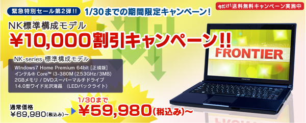 日頃のご愛顧に感謝の気持ちを込めて、FRONTIER製ノートパソコン(2モデル)を