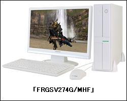 新製品の2機種目は、スリムタワーの筐体に、インテル(R)Core(TM)i5-2300プロセッサー、2GBメモリ、500GBハードディスク、インテル(R)H67 Expressチップセット、NVIDIA(R)GeForce(R)GT430 1024MBブラフィックス、DVDスーパーマルチドライブ、USB3.0ポートを搭載し、Windows(R)7 Home Premium 32bit 正規版をプリインストールした「FRGSV274G/MHF」が、7万9,800円となります。