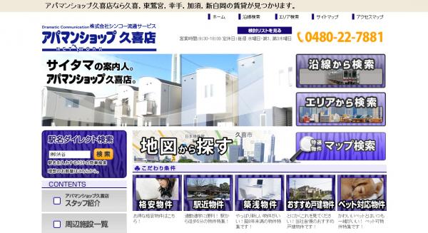 この度の『シンコー流通サービス』様のWEBサイト『アパマンショップ久喜店』は、埼玉県の久喜エリアの賃貸を扱うサイトとなっております。自社ホームページ構築支援ASP「不動産検索Lab2」を利用し、ポータルサイト「いえらぶ」と連動する形で、サイトを構築しております。