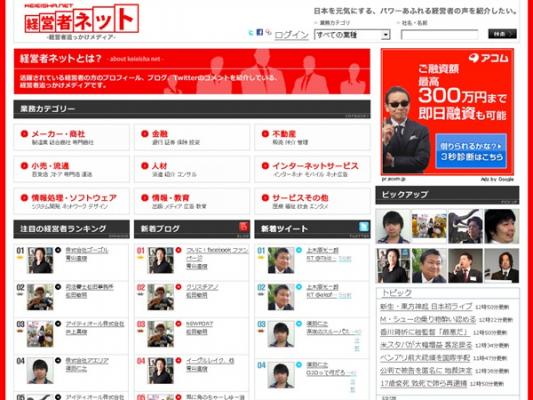 インターネットメディア事業を展開するアイティオール株式会社(本社:東京都港区、代表取締役:鹿島 雄介)は、経営者のブログやツイッターの記事を集約する、経営者追っかけメディア『経営者ネット』を公開したことをお知らせします。