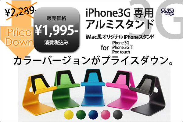 iPhone3G専用アルミスタンドのカラー5タイプを2,289円(税込)から、