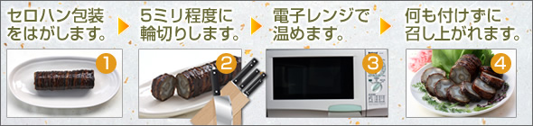 薄く切った後、温めてから食べます。約五ミリに輪切りして、電子レンジで温めるだけで美味しくお召し上がりいただけます。