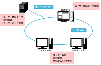 *Active Directory:ネットワーク上に存在するサーバ、プリンタなどのハードウェアや、それらを使用するユーザの属性、アクセス権などの情報を一元管理することができるサービス。
