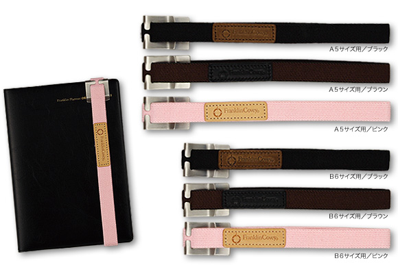 一般的なダイアリーバンドは、ゴムバンドが交換できないタイプがほとんどですが、フランクリン・プランナーのオーガナイザーバンドは別売のバインダーバンド2色セット (B6サイズはコンパクトサイズに対応 税込1470円、 A5サイズはクラシックサイズに対応 税込1575円)と交換が可能になっており、色のバリエーションを楽しめる設計になっている新しいタイプのバンドです。