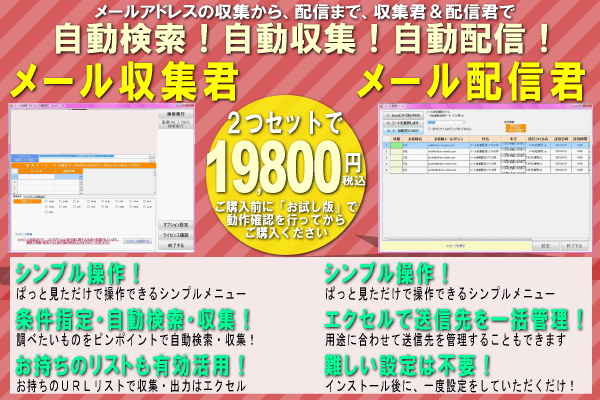 「メール収集君」「メール配信君」が2つセットで発売開始となりました!