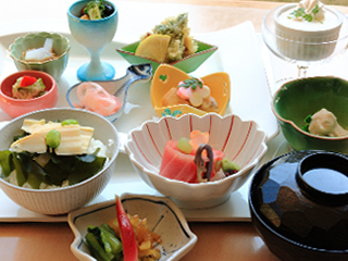 2月の月替わりランチメニューは、「紅梅御膳」となっております。「紅梅御膳」では、まだまだ寒いこの季節に、心地よい香りと共に小さな花を咲かせてくれる紅梅の花をお皿の上に表現しました。こちらは、平日20食、土曜・日曜・祝日30食の数量限定メニューとなっております。