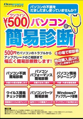 ●パソコンの「お困り事」を、ワンコイン500円で簡易診断!