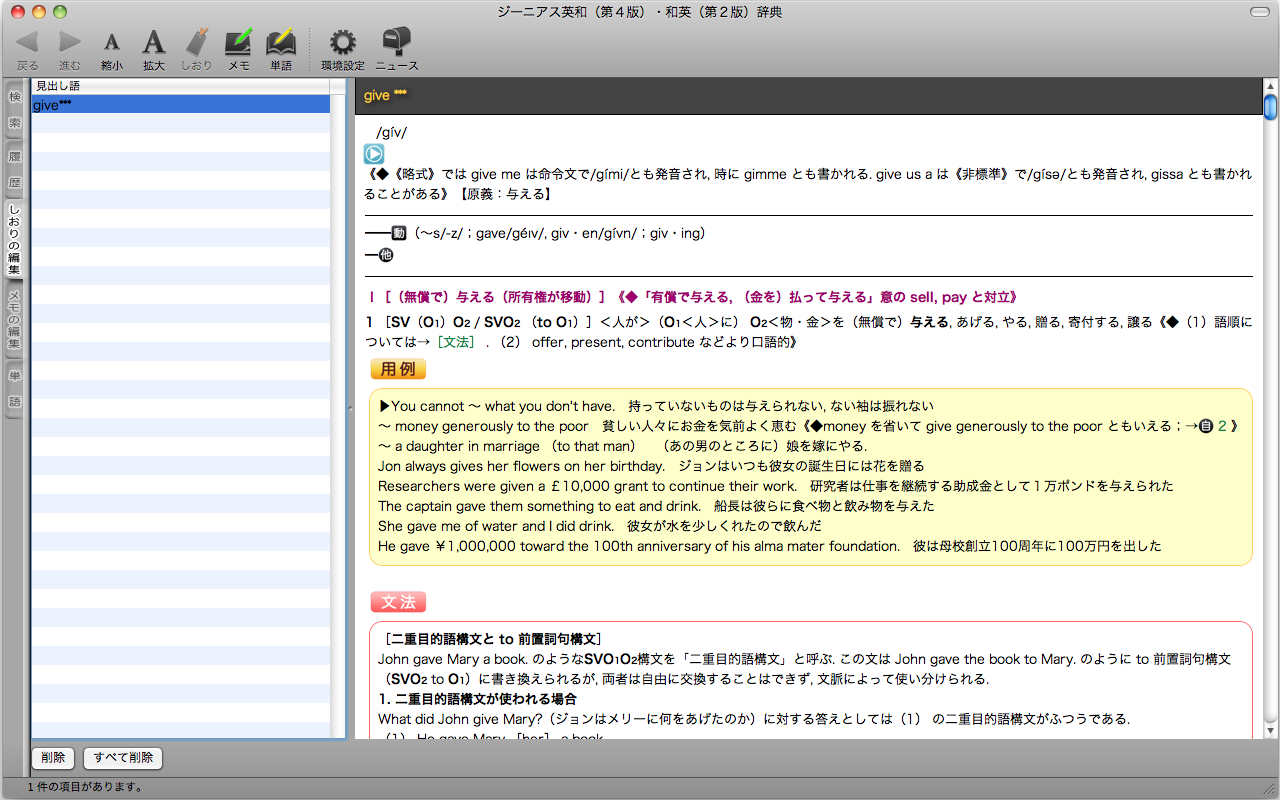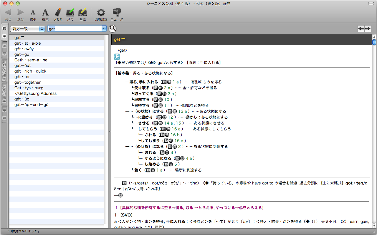 ●『ジーニアス英和(第4版)・和英(第2版)辞典』(Mac App Store版)