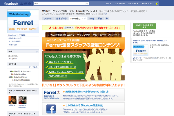 Webマーケティングポータルサイト「Ferret」のFacebook公式ファンページ