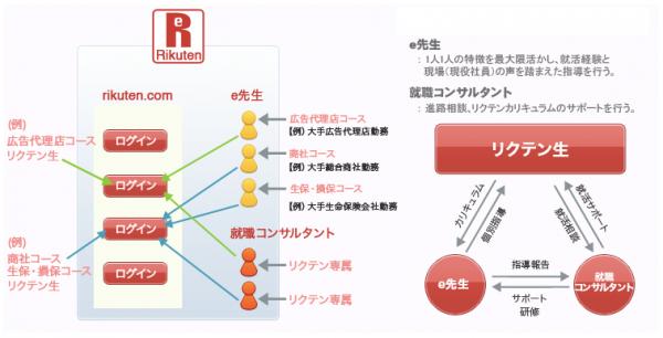 「rikuten.com(リクテンドットコム)」では、受講生一人一人に、WEB通信添削は、e先生(業界別大手現役社員で構成)が経験を活かした個別指導。進路などの相談は、担当の就職コンサルタントがサポートするWサポート体制を行うと共に、模範解答やアピールを暗記するのではなく、質問の意図を見抜き、論理的に考える・答えるスキルリクテン方程式を身に付けさせます。