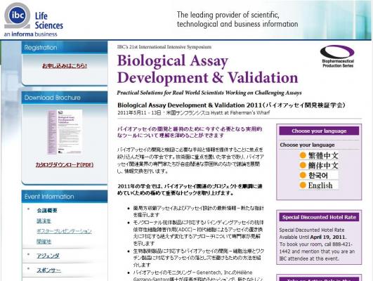 株式会社グローバル インフォメーションでは、皆様の利便性を図る為に、日本語、英語、韓国語、中国語で「Biological Assay Development & Validation 2011 (バイオアッセイ開発検証学会)」の情報を提供するとともに、会議の参加のお申し込みを承っております。