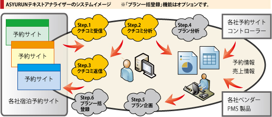 「ASYURUNテキストアナライザー」とは、宿泊予約サイトのクチコミ情報を一括で管理および分析できるソフトウェアサービスです。