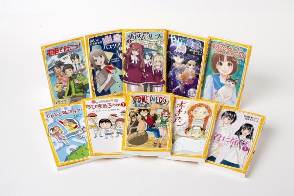 「電車で行こう! 新幹線を追いかけろ」「あいにおまかせ!? 幽霊バスツアー 1」「プリズム☆ハーツ!! 1 めざせ! シスター候補生」「や さしい悪魔 1 世界の破滅を君の手に」「初恋ネコ 1 放課後、いつもの場所で」「笑って自由研究 おかし工場のひみつ!!」「こども小説 ちびまる子 ちゃん 1」「ONE PIECE ワンピース ローグタウン編 みらい文庫版」「新訳 赤毛のアン」「君に届け 1 はじめての気持ち」