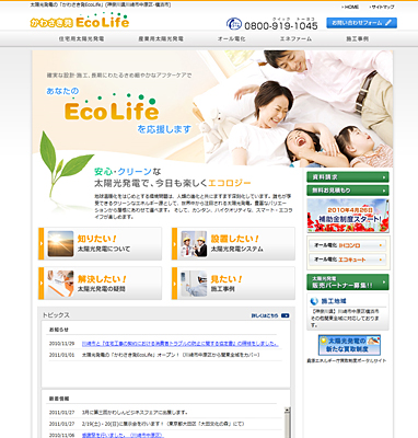 かわさき発EcoLife(運営会社:東横化学株式会社、本社:川崎市中原区、代表取締役社長:加藤廣久)は誰もが享受できるクリーンなエネルギー源として世界中から注目される太陽光発電の普及を促す啓蒙サイトであると同時に、東横化学株式会社が前期より本格的にスタートさせた新規事業、太陽光発電システムの一般家庭・事業所に対する施工を受注するための足がかりとなるサイトです。