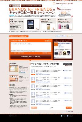 株式会社B4F(以下B4F)(本社:東京都渋谷区、代表取締役社長:アルメル・カイエール)は、お陰さまで2011年3月8日に、サイトオープン1周年を迎えます。1周年を記念して、B4Fの運営する招待制ファミリーセールサイト「BRANDS for FRIENDS(ブランズ・フォー・フレンズ)」のキャッチコピーをtwitterで募集するキャンペーンを行います。