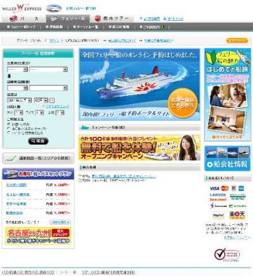 移動ポータルサイトを運営するWILLER TRAVEL株式会社(http://travel.willer.co.jp/、代表取締役:村瀬茂高、以下ウィラー・トラベル)は、2011年から3年計画で、フェリー・船を今まで利用していなかった人が、利用したくなるような価値を提供し、新たな移動市場を創造します。その最初の取組みとして、全国のフェリー・船が簡単、便利にオンラインで予約できるポータルサイトを2月28日にWILLER EXPRESSサイト内に開設します。
