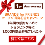 ●キャンペーン概要キャンペーン期間中に、「ブランズ・フォー・フレンズ」でお買い物をする、と1回につき1000円のショッピングクーポンプレゼント!期間中は何回でも、いくらの買い物でも大丈夫!