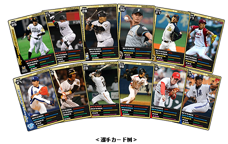 選手カードは、ダルビッシュ有選手、阿部慎之助選手、田中将大選手、金本知憲選手、和田毅選手などプロ野球全12球団の現役選手・現役監督のみならず、長嶋茂雄選手、王貞治選手、張本勲選手、東尾修選手、桑田真澄選手など往年の名選手も全て実名・実写真で登場します。ユーザーは好きな選手のカードをコレクションして楽しむことも可能となっております。