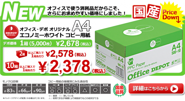 今号ではオフィス・デポ人気No.1コピー用紙がリニューアル!