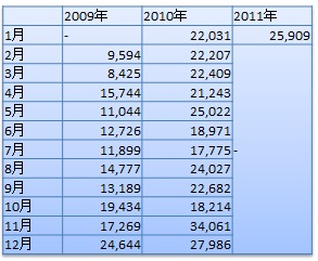 今回調査をした結果、2009年2月~12月、2010年1月~12月を比較した結果、