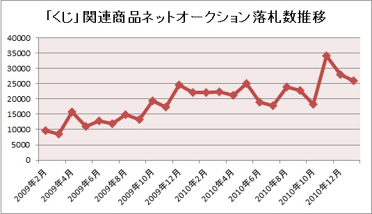 また、弊社では、2009年にコンビニエンスストアで人気の「一番くじ」の落札動向を調査しました。