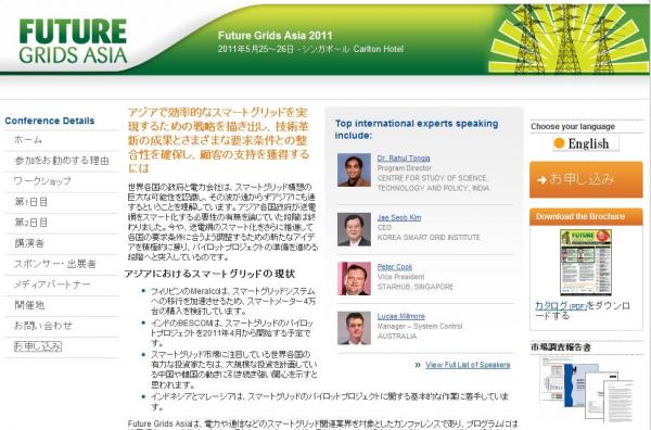 株式会社グローバル インフォメーションでは、皆様の利便性を図る為に、日本語、英語、韓国語、中国語で「Future Grids Asia 2011」の情報を提供するとともに、会議の参加のお申し込みを承っております。