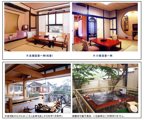 「木の館」28室(内特別室2室・露天風呂付8室)→花鳥風月をテーマにした各々違ったインテリアのお部屋の和風旅館