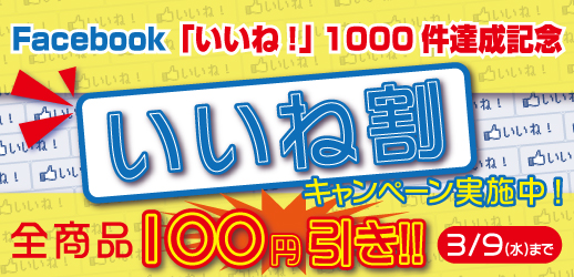 そこで、「いいね!」1000件突破の記念に、「いいね割」キャンペーンを開催。