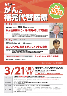 2011年3月21日に、セミナー「がんと補完代替医療」を開催いたします。