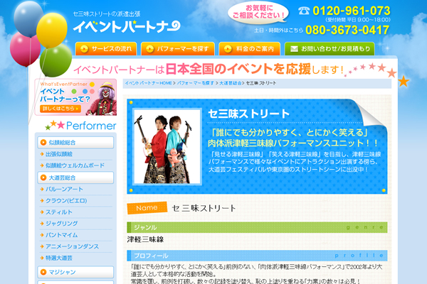 ・ 大道芸人・似顔絵師・マジシャン・ケータリングカー等のイベントへの派遣出張サービスサイト