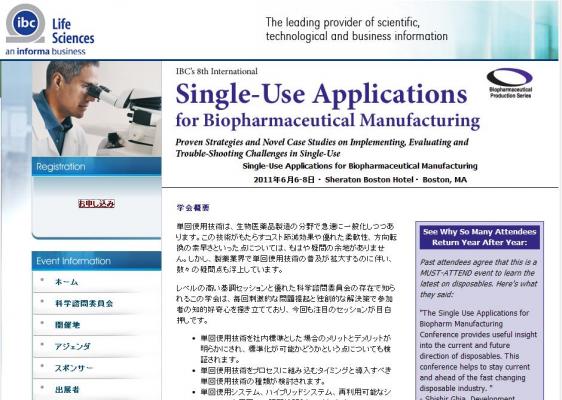 会議:「Single-Use Applications for Biopharmaceutical Manufacturing」