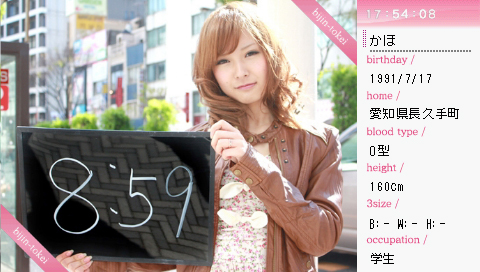 PSP 版オリジナル機能として、カスタマイズ機能を追加しました。拡張パックをダウンロード購入することで「オリジナル設定の美人時計」を楽しむことが可能です。