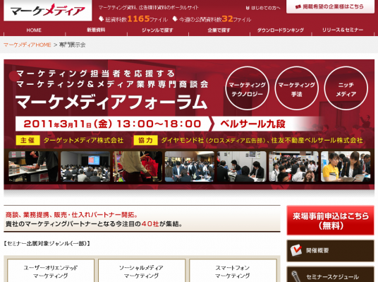 マーケメディアフォーラム 出展のお知らせ<東京:2011年3月11日(金)>