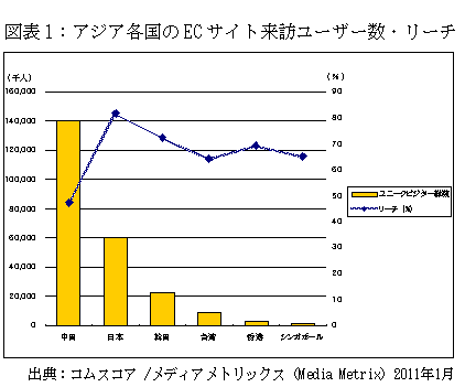 オンラインショッピングはアジアにおいて最も利用者の多いインターネットサービスの一つです。アジアの主要な6つの国及び地域におけるECサイトの
