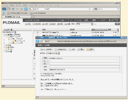 PLOMAILは企業メールのシンクライアント化を実現するWEBメールシステムのソフトウェアで、「らくらく・どこでも・かんたん・あんしん」をコンセプトに開発しています。