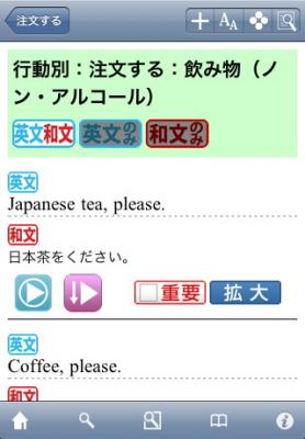 ●場面別、行動別に分類され、必要な表現の検索が簡単