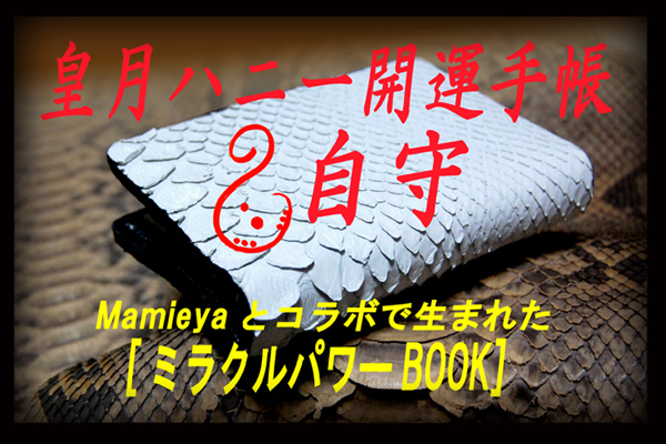 皇月ハニー先生のパワーを込めた知恵と材料を使用した白染色本蛇革開運ミラクルパワーBOOKです。