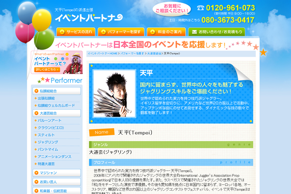 ・ 大道芸人・似顔絵師・マジシャン・ケータリングカー等のイベントへの派遣出張サービスサイト