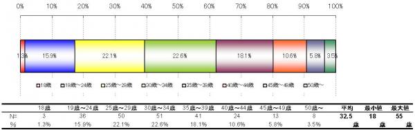 > 30歳~34歳が22.6%と最も多く、次いで25歳~29歳が22.1%