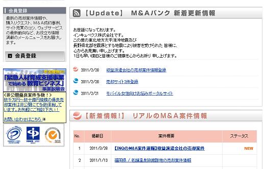 サイト内容: 売却希望情報、買収リクエスト、M&A成約事例、M&A業界の最新動向など、M&A情報の掲載・配信